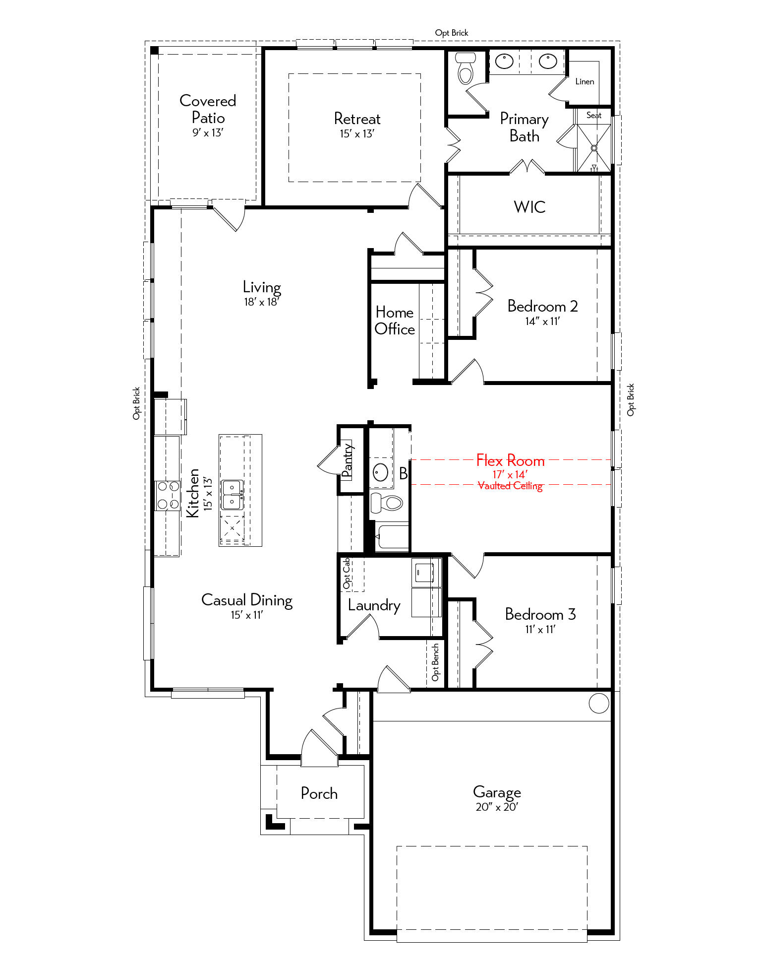 A one-story home that lives large. The Cypress features 3 bedrooms, 2 baths, and a flexible room for whatever your lifestyle needs — home office, playroom, or hobby space. The kitchen offers plenty of cabinet and counter space plus a walk-in pantry, and the vaulted ceiling in the primary suite adds an open, airy feel. Enjoy the extended foyer with a tray ceiling, a convenient mudroom, and a spacious laundry room. Step out back to your covered patio, perfect for weekend cookouts.